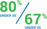 Percentages of workers who state that technology is a key factor in whether or not they would accept a job offer.